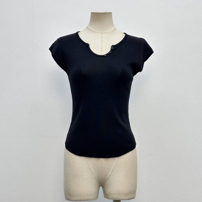 Black Small V-neck Cap Sleeve Knitted Top Slim Fit Inner Wear Undershirt