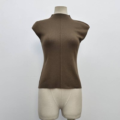 Mock Neck Sleeveless Knitted Slim Top