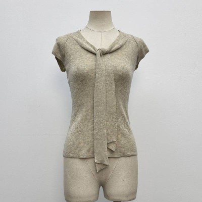 Elegant Tie-neck V-neck Sleeveless Knit Top
