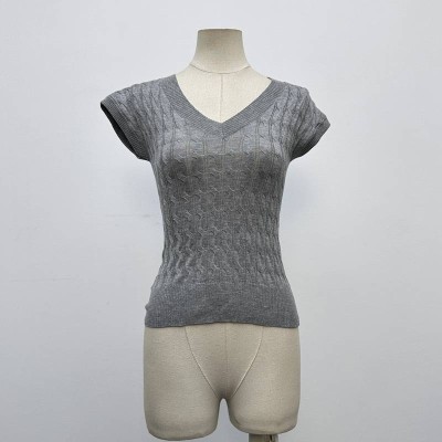 Grey V-neck Cable Knit Short Sleeve Slim Cropped Top