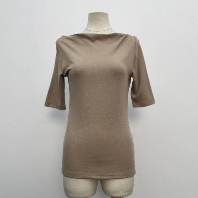 Solid Color Boat Neck Half Sleeve Knitted Slim Fit Top
