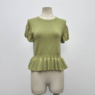 French Style Gentle Ruffle Waist-cropped Knit Short-sleeve Top