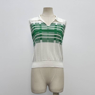 Green & White Plaid Collar Sleeveless Knitted Top