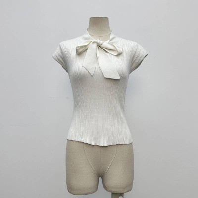 Elegant Tie-neck Sleeveless Knit Top Slim Ribbed Fitted Inner Basic Shirt
