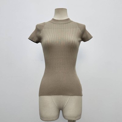 Simple Crew Neck Short Sleeve Knitted Cropped Top Slim Fit Versatile Inner Wear