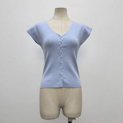 Light Blue V-neck Button Sleeveless Knit Top