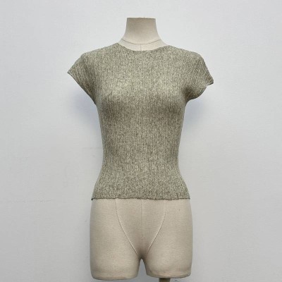 Gray Mock Neck Short Sleeve Knitted Slim Fit Base Top