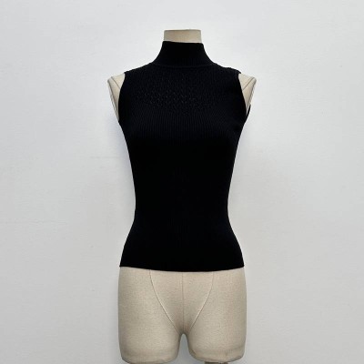 Mock Neck Sleeveless Knitted Slim Vest Solid Color Simple Inner Wear Top