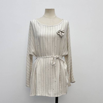 3D Floral Striped Waist-cinching Long-sleeve Knit Top Loose Slim-fit Casual Top
