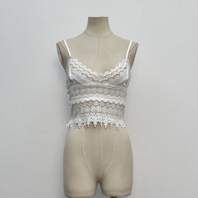 White Lace Trim Camisole Short Backless Crop Top