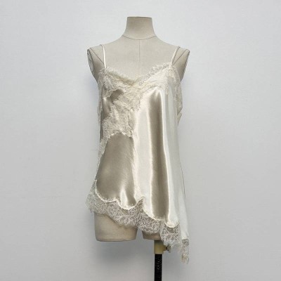 French Lace Patchwork Satin Camisole Sexy V-neck Sleeveless Top