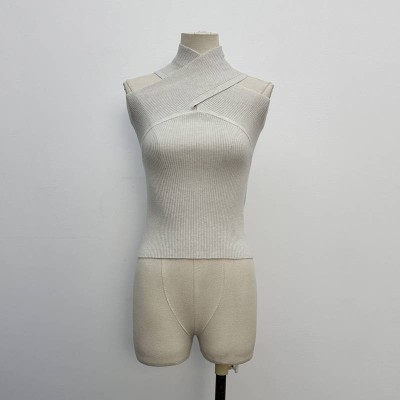 Elegant Halter Cross Sleeveless Knitted Vest Slim Fit Off-Shoulder Inner Top