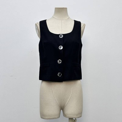 Black Short Tie-up Camisole Vest Simple Button Design Waist-exposed Top