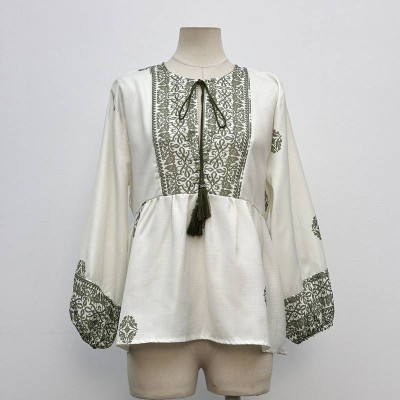 Vintage Embroidered Lace-up Loose Long Sleeve Chiffon Blouse Temperament Age-reducing Doll Shirt Top