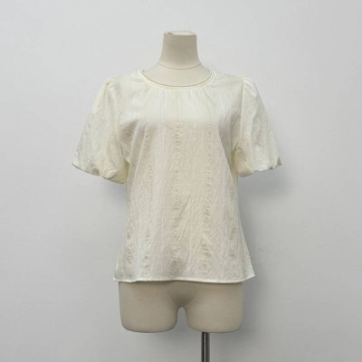 Pearl Round Neck Puff Sleeve Jacquard Short Sleeve Chiffon Top