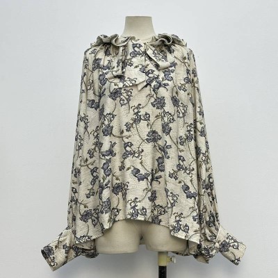 Vintage Blurred Floral Ruffle Chiffon Shirt Loose Long Sleeve Lapel Top