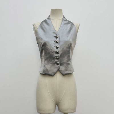 Silver Gray Dark Pattern Letter Halter Sleeveless Short Top