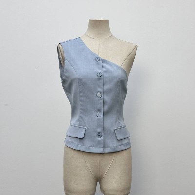 Stylish One-Shoulder Sleeveless Cropped Waist-Fitted Top