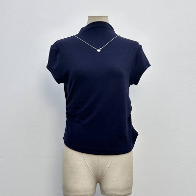 Mock Neck Short Sleeve Ruched Cropped Top Slim Fit Basic Tee