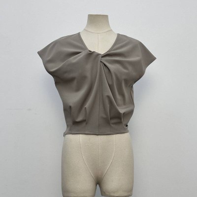 Elegant Lapel Sleeveless Pleated Cropped Shirt-style Top
