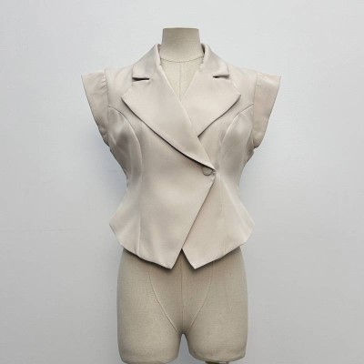 Elegant Lapel Waist-cinched Sleeveless Cropped Top Commute Simple Vest-style Top