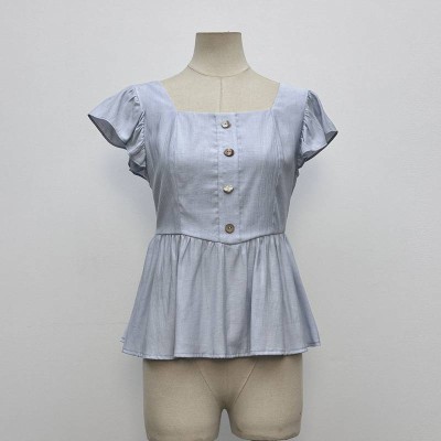 Square Neck Ruffle Short Sleeve Waist-cinched Short Top Temperament Slim Ruffle Hem Women's Top