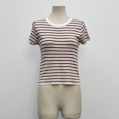 Vintage Striped Crew Neck Short Cropped T-shirt Slim Fit Basic Top