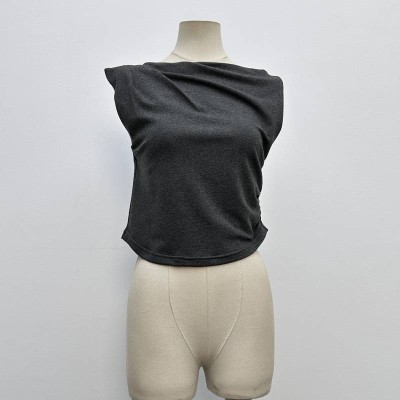 Gray Sleeveless Twist Cropped Top Niche Design Off-Shoulder Slim Top