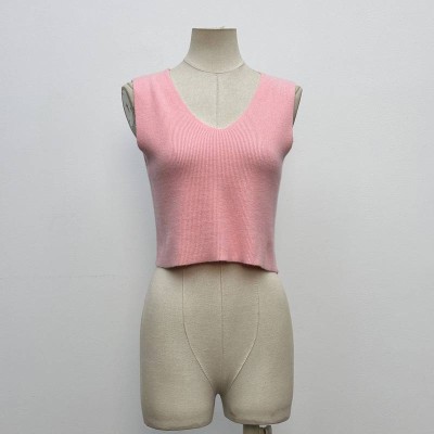 Pink V-neck Knitted Sleeveless Cropped Tank Top