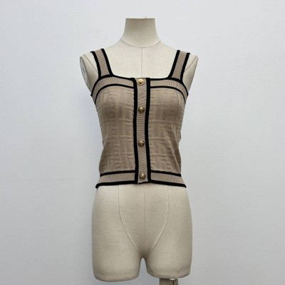 Simple Solid Color Round Neck Sleeveless Short Waistcoat Commuter Button-up Top