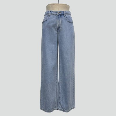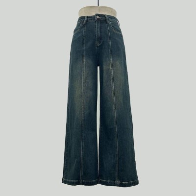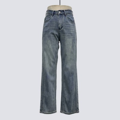 High Waist Vintage Washed Wide-Leg Jeans Loose Slim Straight-Leg Pants