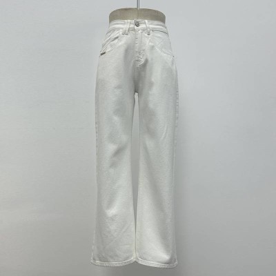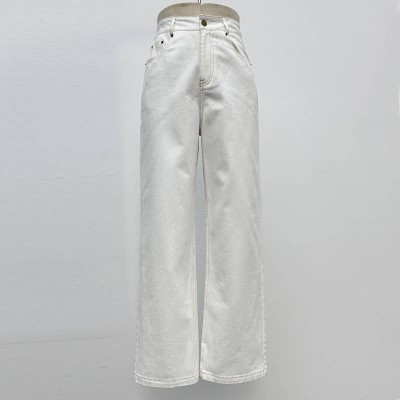 White High Waist Wide Leg Jeans Loose Slim Straight Denim Pants
