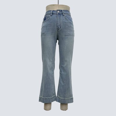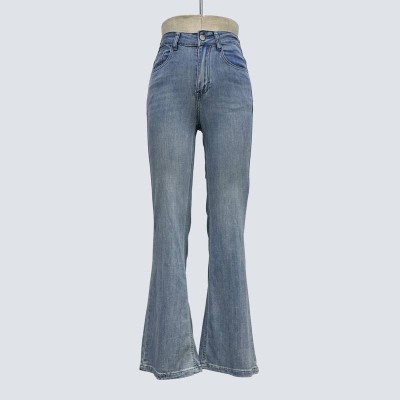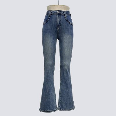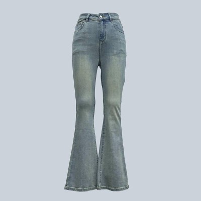 Vintage Washed Flared Jeans High Waist Slim Fit Denim Pants