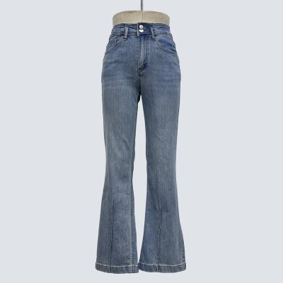 Vintage High-waisted Double-button Flared Jeans Slim-fit Denim Trousers
