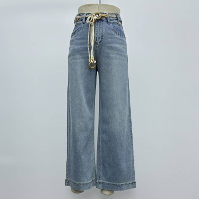 Vintage Washed Distressed Rope Buckle Belt Wide Leg Jeans