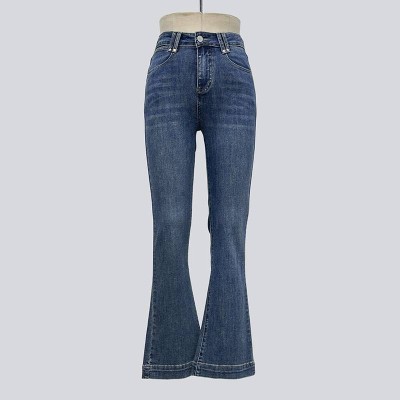 Vintage Washed Flare Jeans High Waist Slimming Cuffed Denim Pants