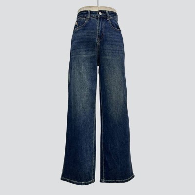 Vintage Blue High-Waisted Wide-Leg Jeans Loose Slim Straight Denim Trousers