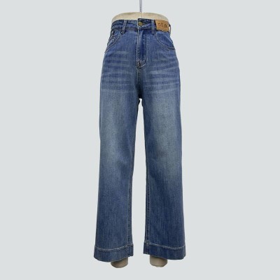 Vintage Washed Wide-Leg Jeans High Waist Loose Fit Straight Denim Trousers