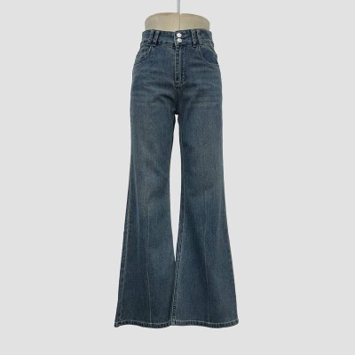 Vintage High Waisted Flare Jeans Slim Fit Wide Leg Denim Trousers