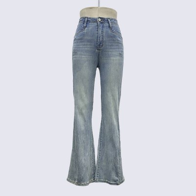 Vintage Washed Flare Jeans High Waist Slim Fit Denim Pants