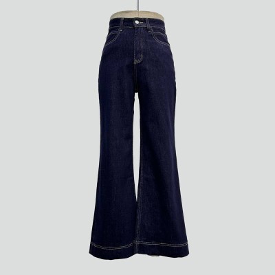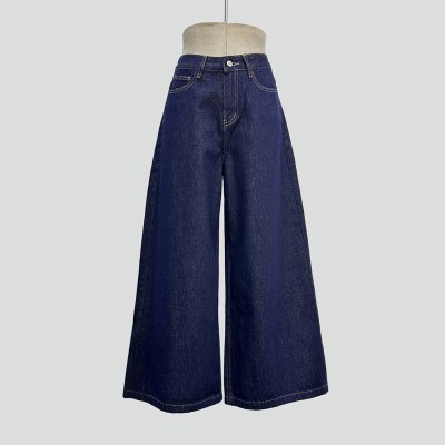 Dark Blue High Waist Wide Leg Jeans Vintage Simple Denim Trousers