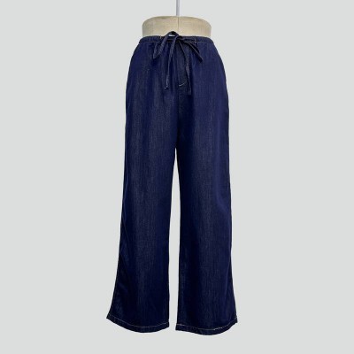 Dark Blue Drawstring Wide-Leg Jeans Casual Laced Loose Trousers