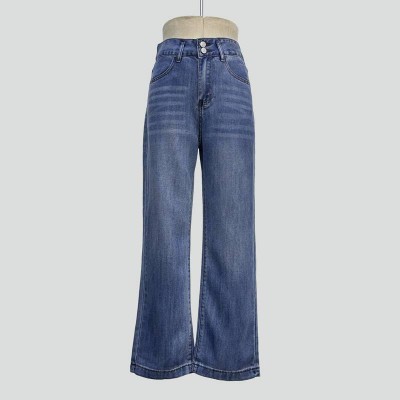 Vintage Blue High Waist Wide Leg Jeans Loose Slim Straight Denim Trousers