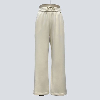 Off-white Drawstring High-waisted Wide-leg Casual Pants