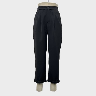 Simple Black High Waist Cuffed Casual Pants Straight-leg Suit Trousers