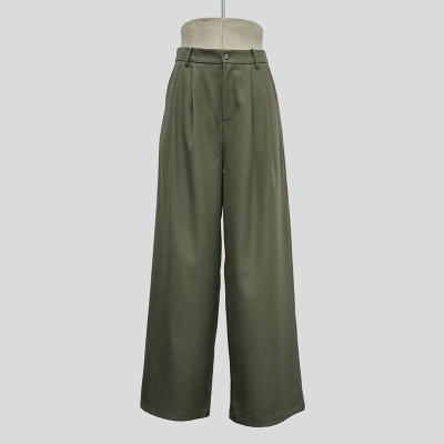 Olive Green High-waisted Draped Wide-leg Casual Pants