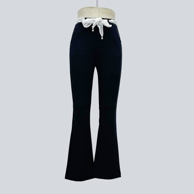 Fashion Drawstring High Waist Flare Casual Pants Black Slim Fit Long Pants