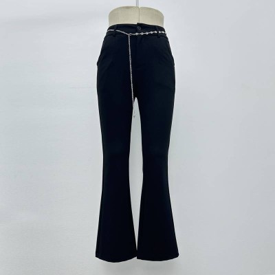 Black Flared Casual Pants with Fashion Waist Chain, Slim-fit Commuter Suit Pants