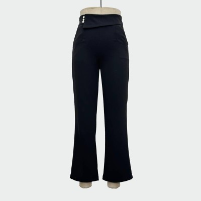 Black High-waisted Flared Casual Pants With Metal Decoration