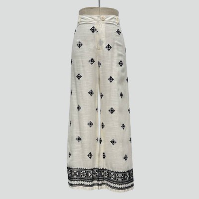 Vintage Ethnic Style Embroidered Wide-Leg Pants Loose High-Waisted Casual Trousers